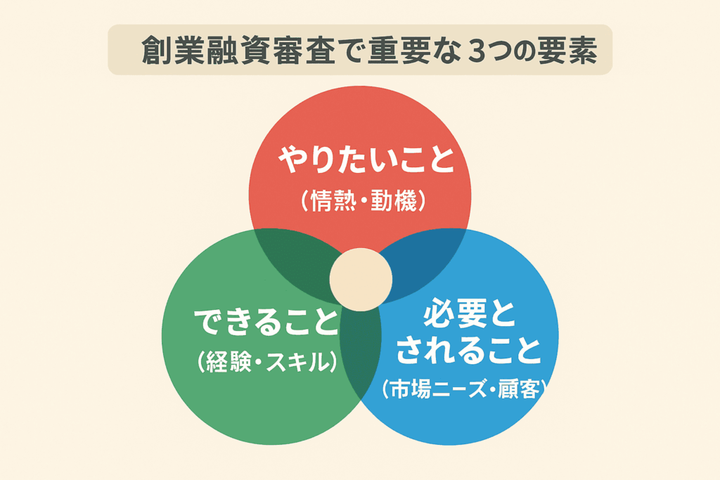 創業融資審査で重要な3つの要素|「やりたいこと」「できること」「必要とされること」が成功の鍵